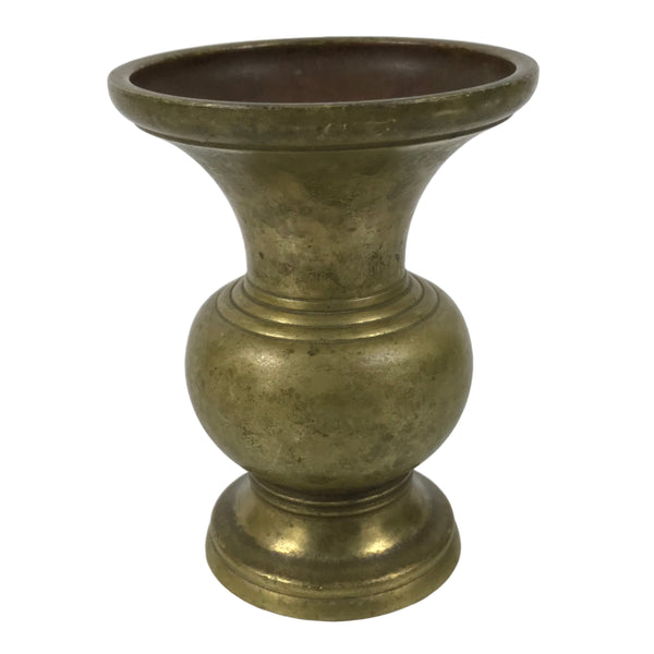 This is a vintage Japanese brass metal flower vase, or hanatate, for Buddhist altars. This particular vase is very simple in design and features a traditional, curvy shape.