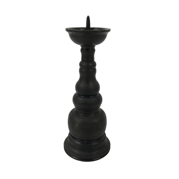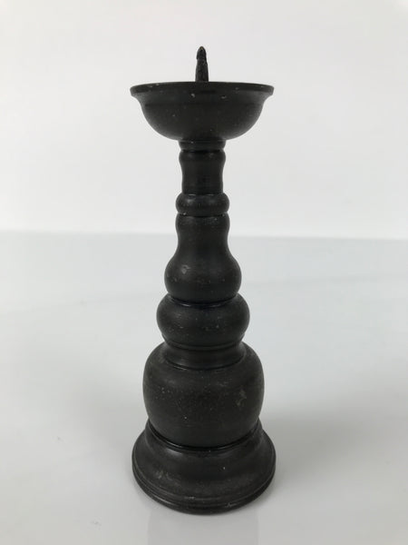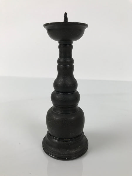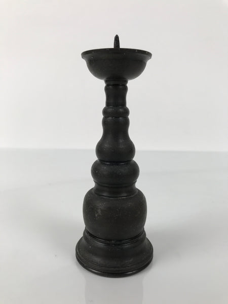 This is a Japanese vintage Buddhist altar candle holder stand. This candlestick is metal with a dark brown-to-black color and has a classic shape. Candlestands or candlesticks are basic Buddhist tools used in most sects and are an essential item for Buddhist altars (Butsudan).