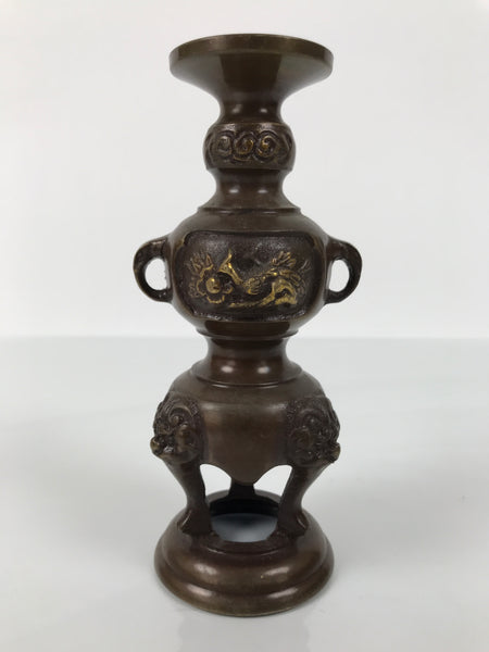 Japanese Buddhist Altar Fitting Metal Candle Stand Vtg Shokudai Brown Bird BA773