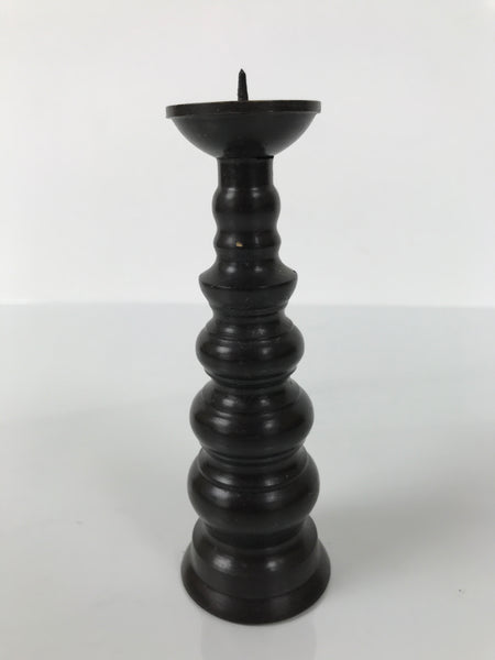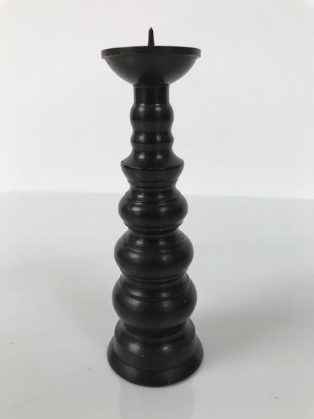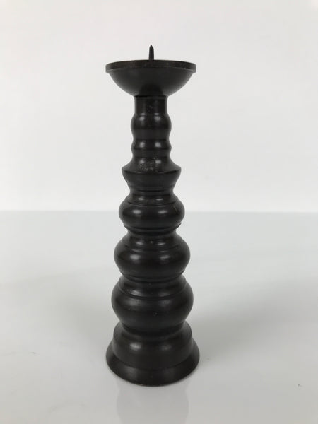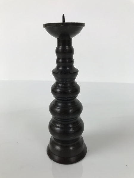 This is a Japanese vintage Buddhist altar candle holder stand. This candlestick is metal with a dark brown-to-black color and has a classic shape. Candlestands or candlesticks are basic Buddhist tools used in most sects and are an essential item for Buddhist altars (Butsudan).