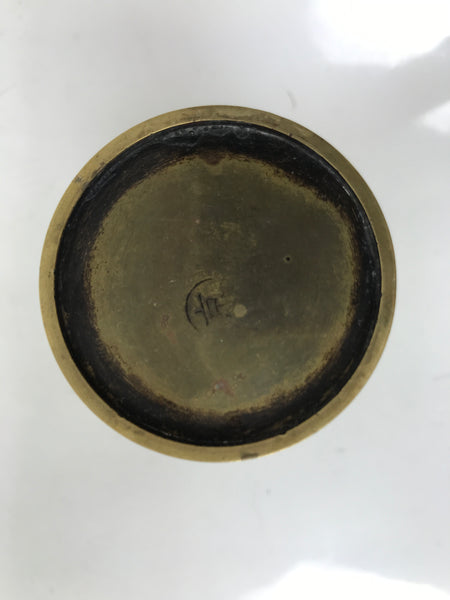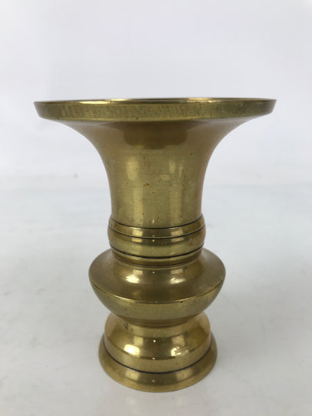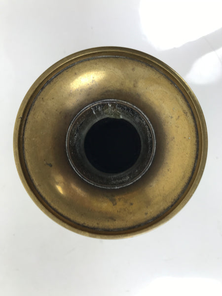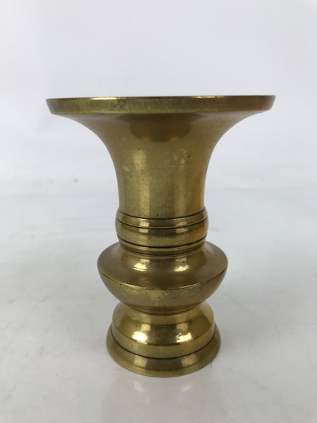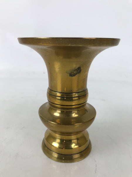 This is a vintage Japanese brass flower vase, known as a hanatate, used for Buddhist altars. It is common to offer a range of seasonal and symbolic flowers in front of a Buddhist altar. It is also a vessel for Sakaki leaves or Shashagi leaves in Shinto. The offering of Sakaki tree leaves signifies that the gods living in the Sakaki tree will protect the grave and the soul.