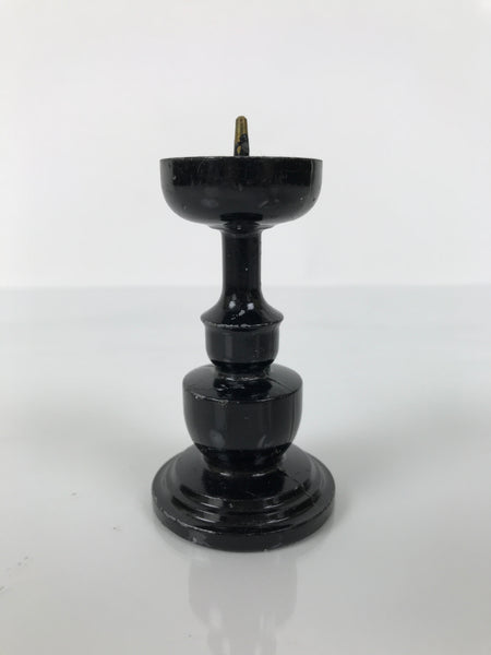 This item is a Japanese vintage Buddhist altar candle holder stand. This small metal candlestick is painted black and has a very simple, classic design. Candlestands or candlesticks are basic Buddhist tools used in most sects and an essential for Buddhist altars (Butsudan).