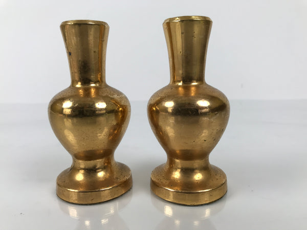 Japanese Buddhist Altar Fitting Metal Flower Vase Vtg Hanatate Gold 2pc BA757