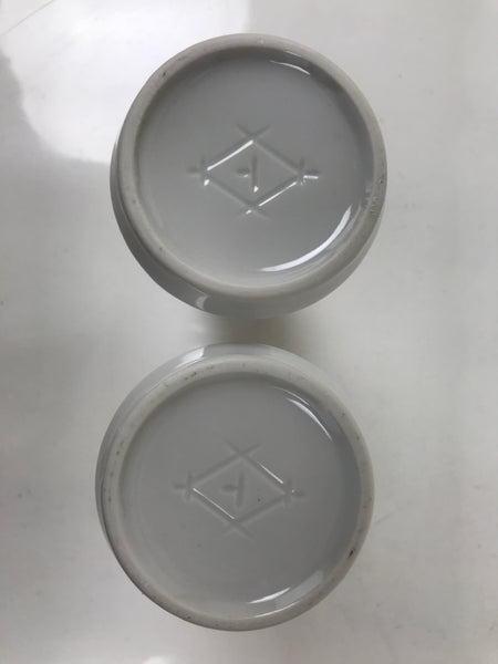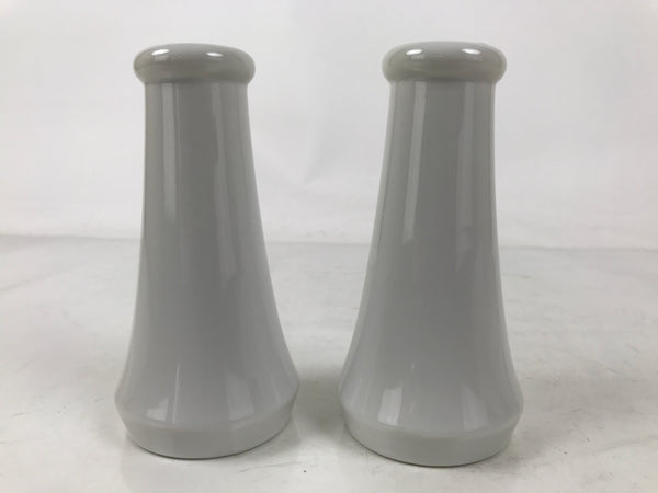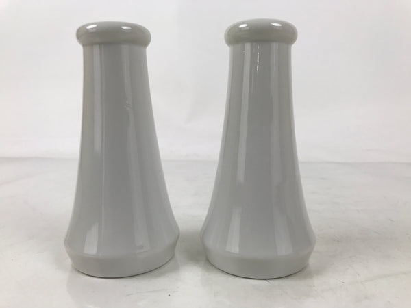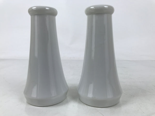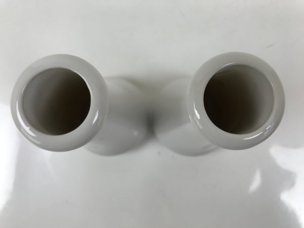 This is a pair of porcelain flower vases, hanatate, for Buddhist altars. These particular vases have a simple, smooth, tapered shape. It features a solid white glaze with no other decoration.