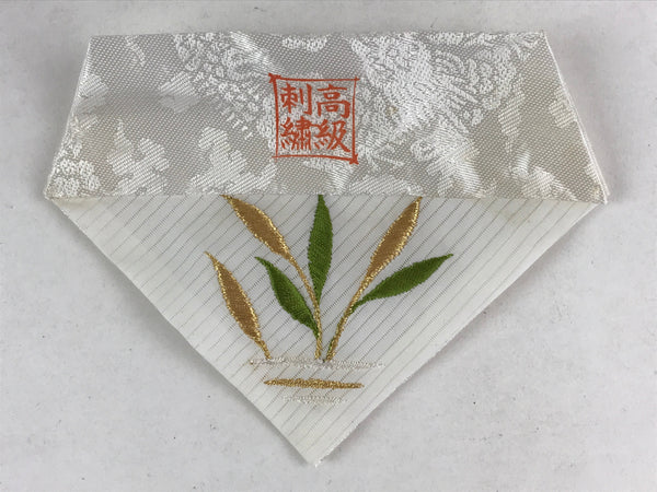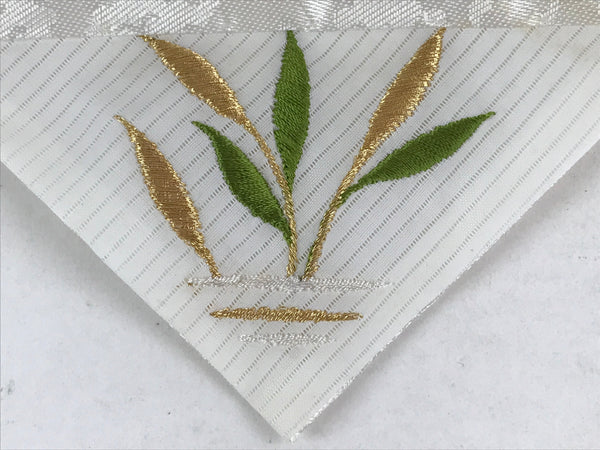 This is a vintage Japanese Buddhist altar tablecloth Uchishiki. It has an embroidered leaf design. uchishiki is mainly used by followers of Jodo Shinshu Buddhism as the upper table (Maejyoku) and the front table (Uwajyoku) in the Buddhist altar during events such as New Year's Day, the equinoctial week, Obon, and memorial services.
