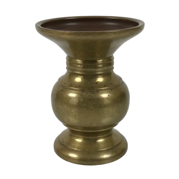 This is a vintage Japanese gold-colored metal flower vase, or hanatate, for Buddhist altars. This particular vase is very simple in design, and features a traditional, curvy shape.