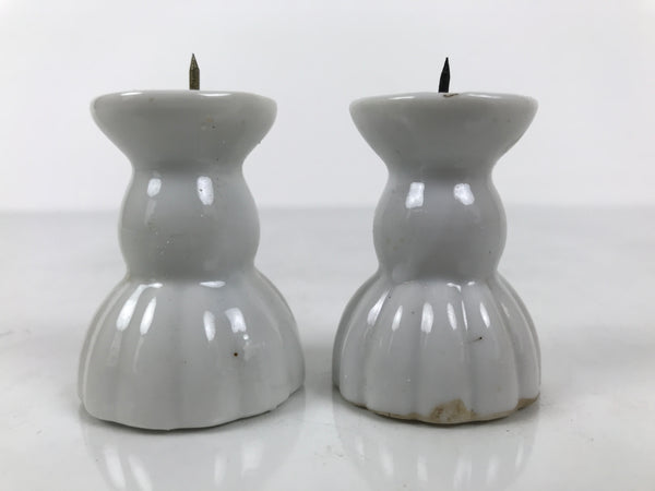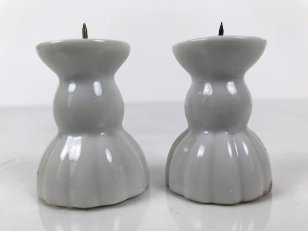 Japanese Buddhist Altar Porcelain Candle Stand 2pcs Shokudai Simple White BA827
