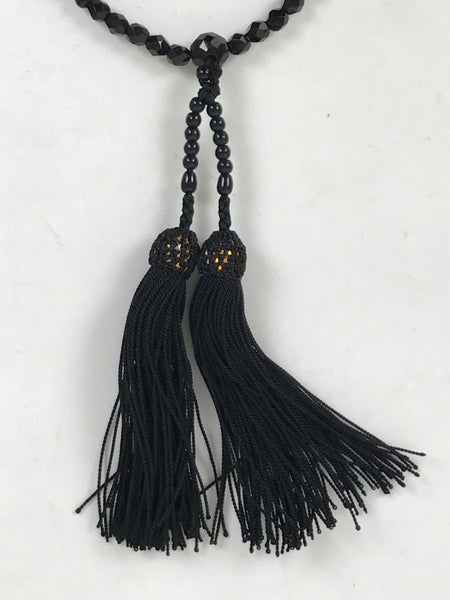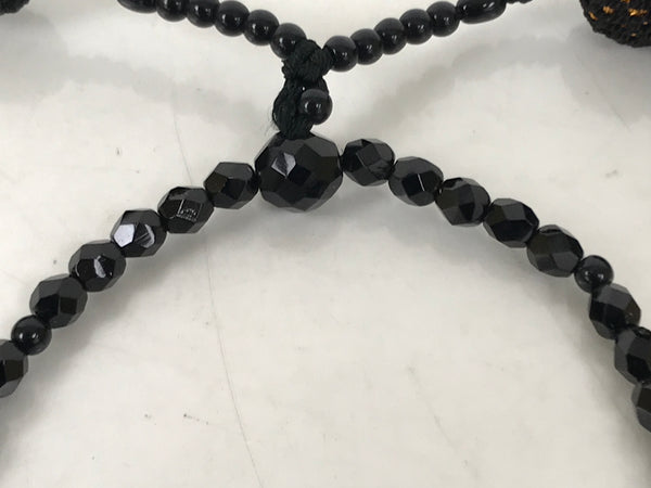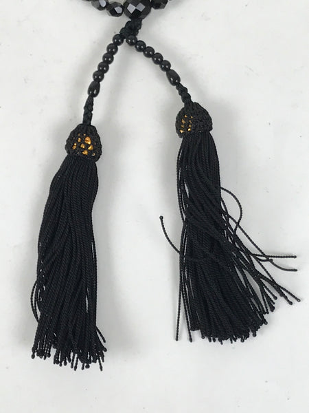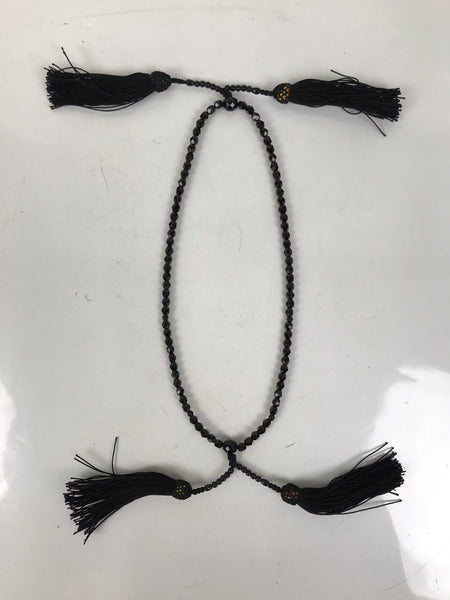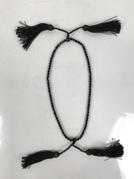 This is a vintage Japanese Buddhist prayer rosary bracelet, Juzu. It is made of black resin beads. A string holds together the whole chain, and black tassels are attached to two bigger beads. This style is commonly used in a double-layered form when praying.