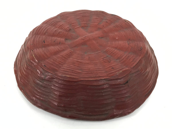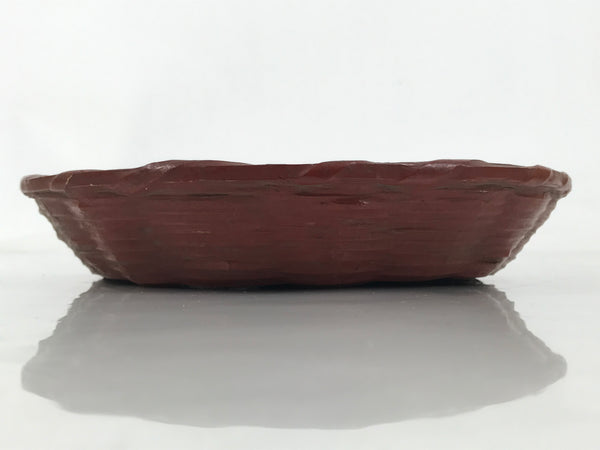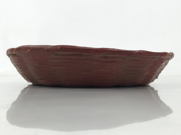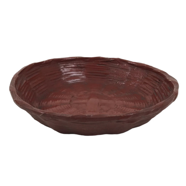 This is a vintage Japanese lacquerware basket. It is a lacquered woven bamboo called rantai shikki. Coated in a reddish-brown lacquer, this beautiful little shallow basket is the perfect addition to any home or office decor.
