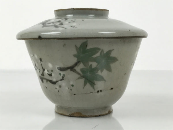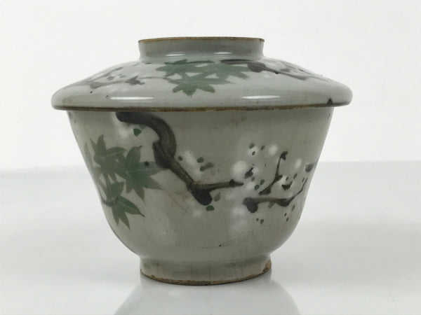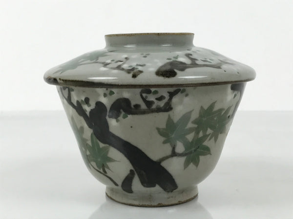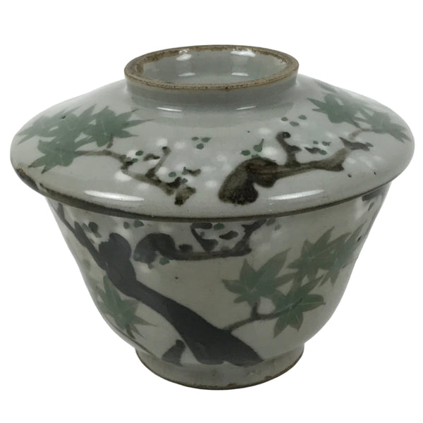 This is a Japanese vintage ceramic bowl with a lid, mushiwan. Mushiwan is used when cooking chawanmushi, steamed egg custard. It can also be used as a presentation dish for smaller meal elements during kaiseki dining or can be used as a lidded teacup.