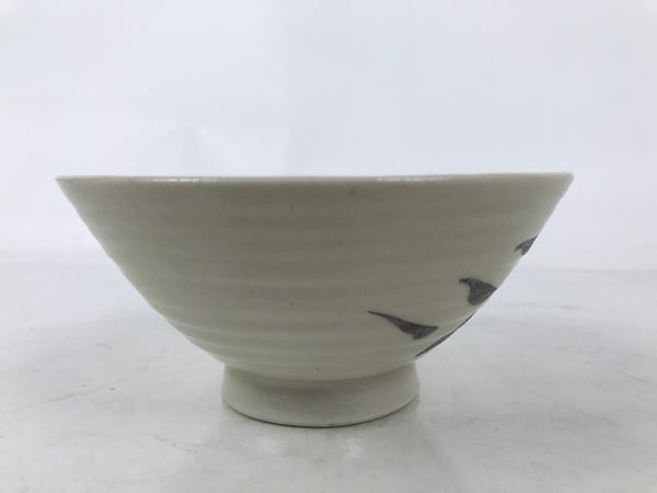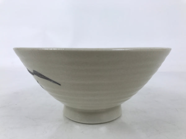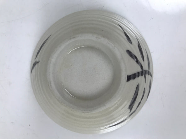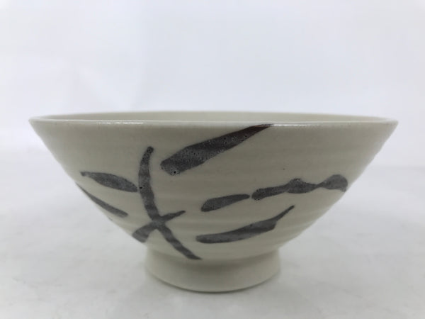 This item is a vintage Japanese ceramic rice bowl. The design on this wide-mouthed bowl is brown and looks like bamboo or other narrow leaves. Overall, it is a very light beige color. It can also be used for side dishes.