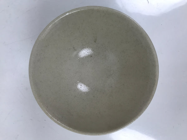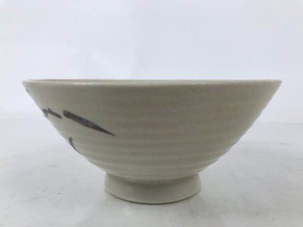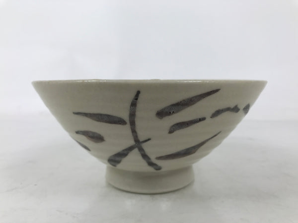 This item is a vintage Japanese ceramic rice bowl. The design on this wide-mouthed bowl is brown and looks like bamboo or other narrow leaves. Overall, it is a very light beige color. It can also be used for side dishes.