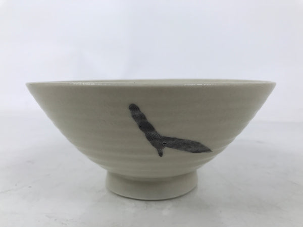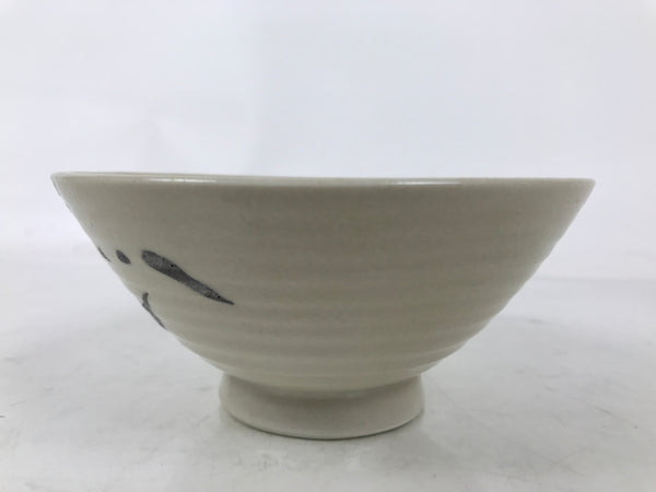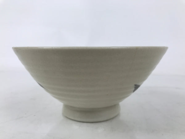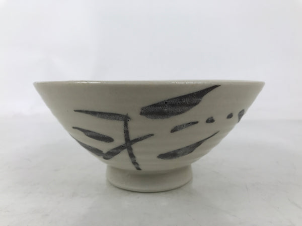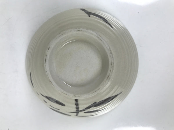 This item is a vintage Japanese ceramic rice bowl. The design on this wide-mouthed bowl is brown and looks like bamboo or other narrow leaves. Overall, it is a very light beige color. It can also be used for side dishes.