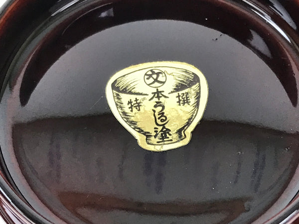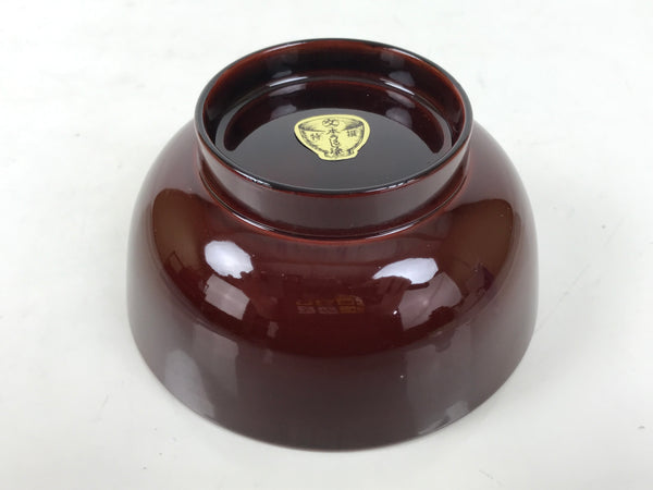 This is a vintage Japanese Wajima wooden lacquered rice bowl. It is a classic red on the inside with the rest a rich brown color, made with natural lacquer. It is a beautifully handcrafted addition to any traditional Japanese dinnerware set.