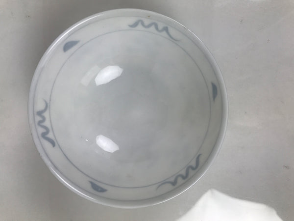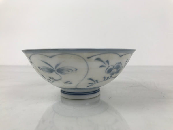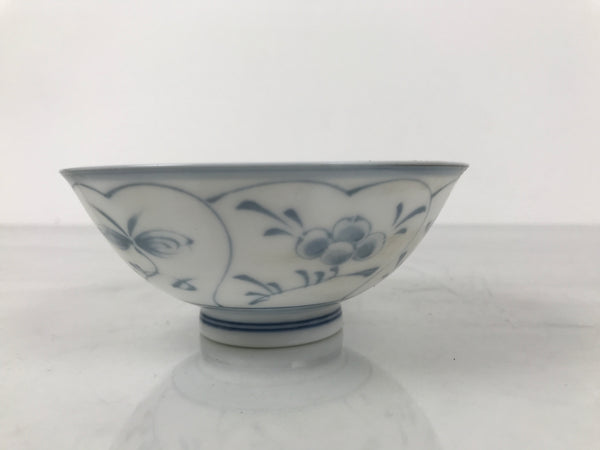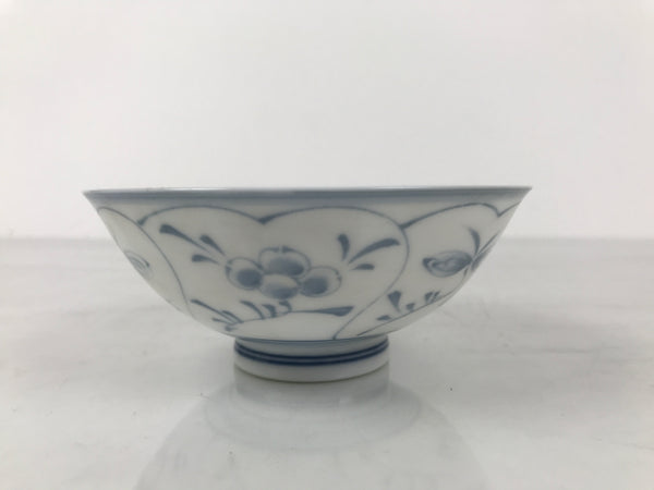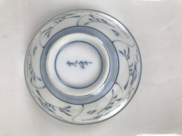 Japanese Porcelain Mino Ware Rice Bowl Chawan Vtg White Blue Plant Vine Tea Y496