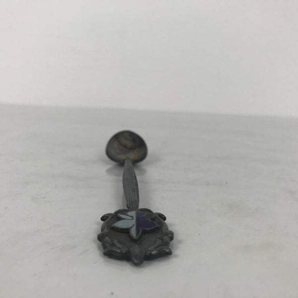 Japanese Metal Spoon Vtg Teaspoon Small Coffee Silver Emblem Blue Enamel JK928