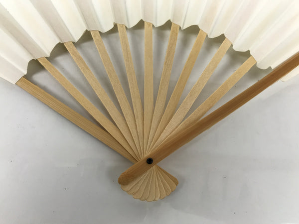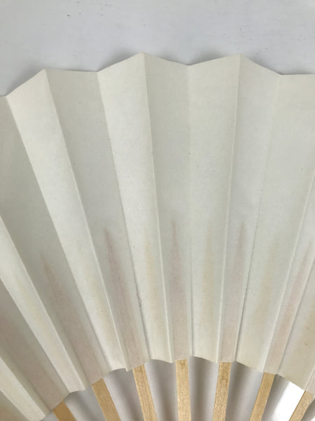 Japanese Paper Folding Fan Sensu Vtg Bamboo Wood Frame Simple Blank White 4D885