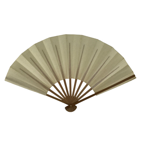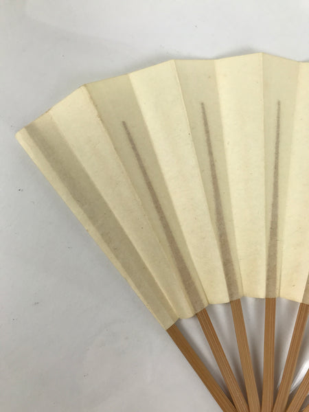 Japanese Paper Folding Fan Sensu Vtg Bamboo Frame Simple Blank Beige 4D884