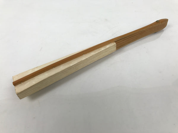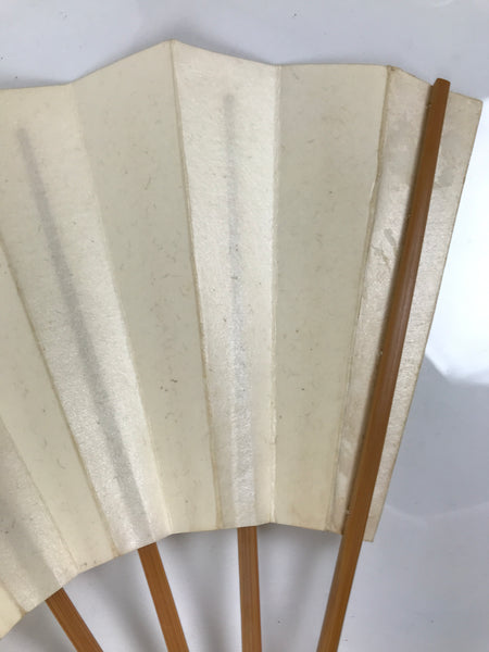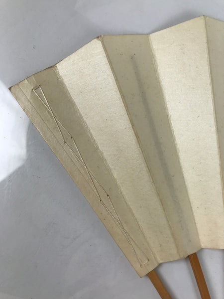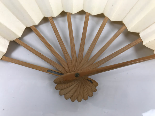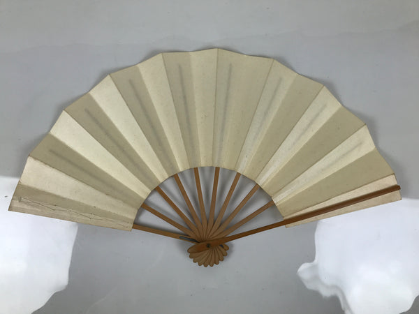Japanese Paper Folding Fan Sensu Vtg Bamboo Frame Simple Blank Beige 4D890