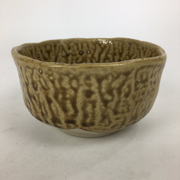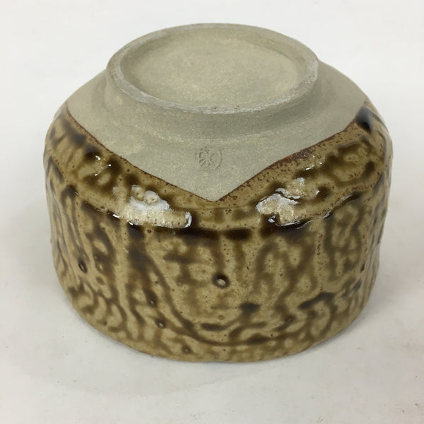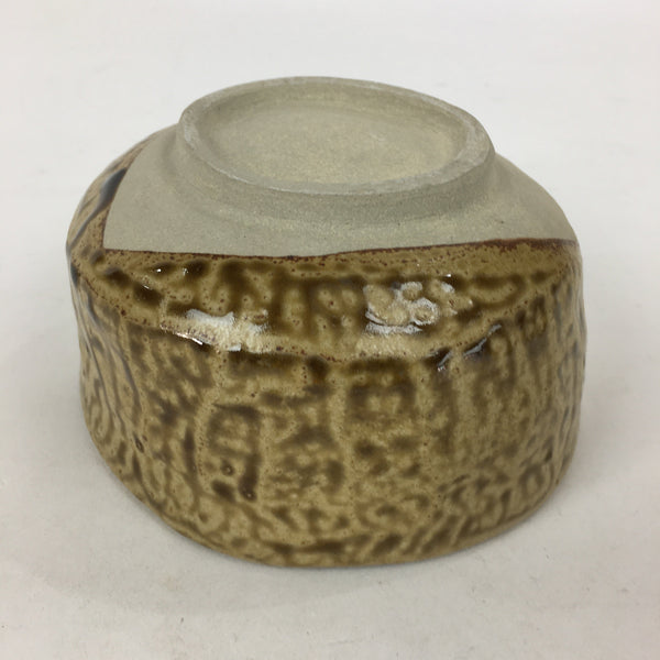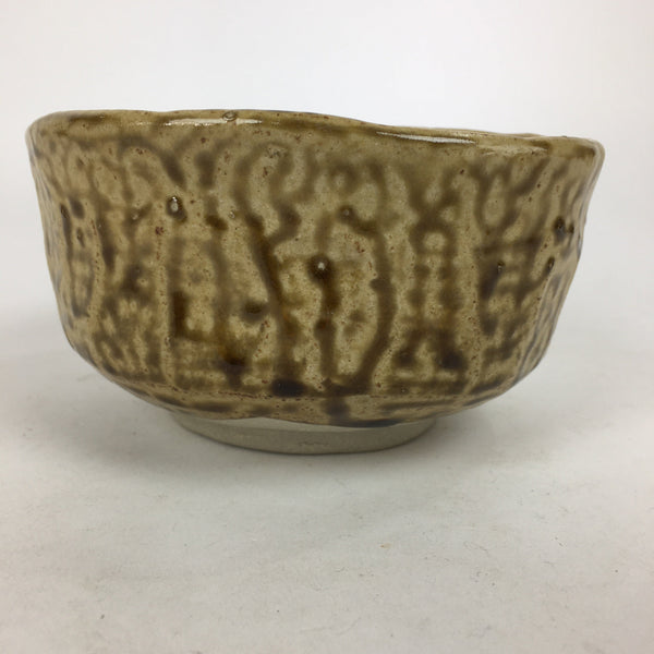 Japanese Ceramic Green Tea Ceremony Bowl Vtg Chawan Yellow Brown Pottery GTB864