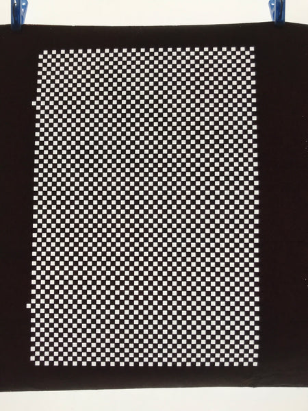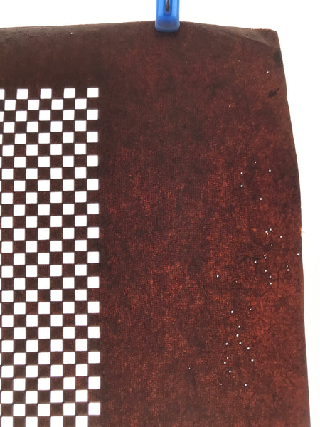 Using traditional mulberry paper, this katagami stencil with silk mesh backing features a traditional ichimatsu-moyou check pattern.