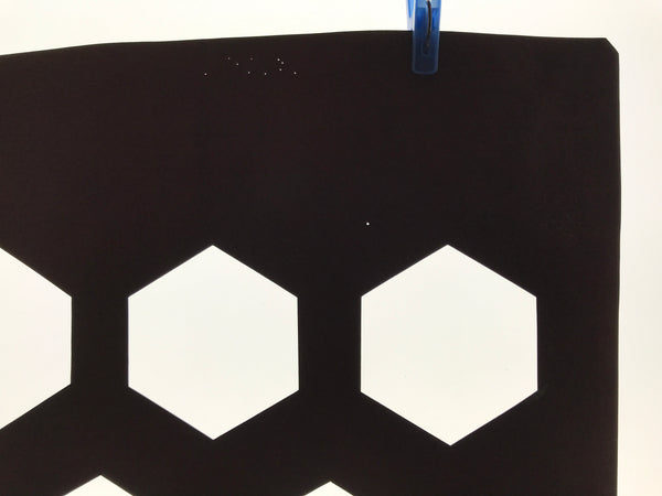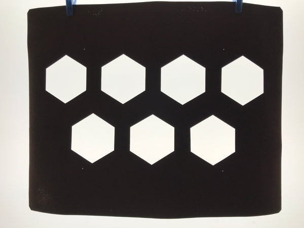 Using traditional mulberry paper, this katagami stencil with no silk mesh backing features a basic hexagonal design (kikko). Kikko represents turtle shells that symbolize strength.