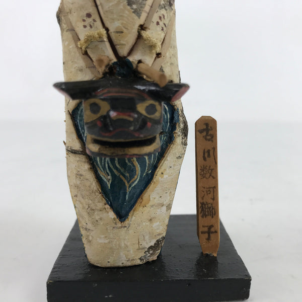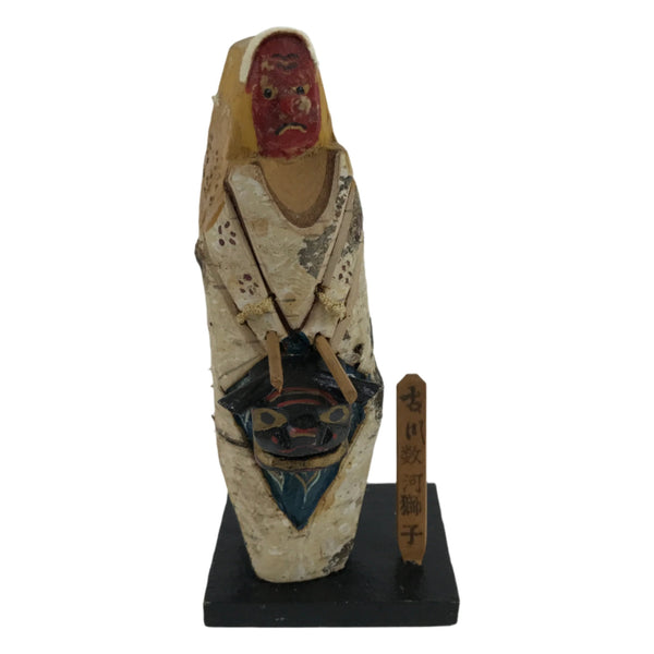 This vintage Japanese wooden kokeshi doll figurine represents a black lion and a tengu, two characters of the lion dance, in Japanese shishimai, performed in Furukawa Sugo (Gifu prefecture). Kokeshi dolls are traditional toys that can easily be used for decorative purposes.