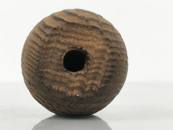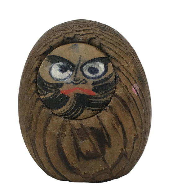 Japanese Wooden Kokeshi Doll Vtg Daruma Figurine Round Brown Black Grain KF814