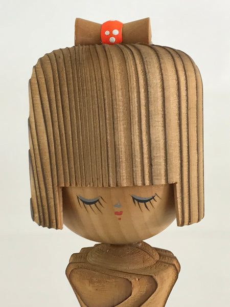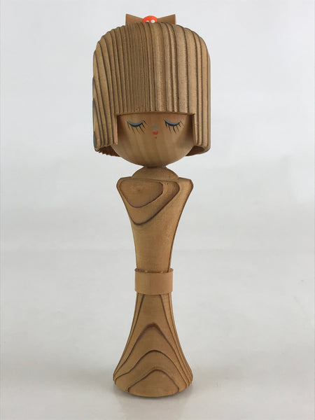 This is a vintage Japanese traditional craft wooden kokeshi doll, figurine. This girl's doll is shaped like wearing a kimono. Kokeshi are simple wooden Japanese dolls with no arms or legs that have been crafted for more than 150 years (the late Edo period) as a toy and amulets for children.