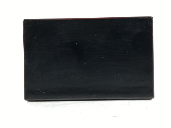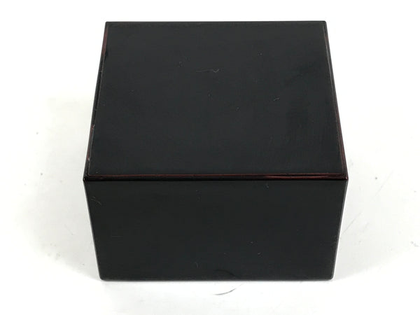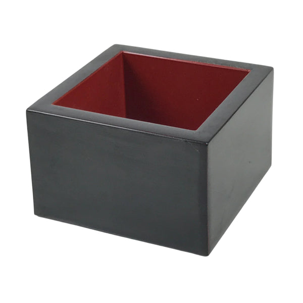 This is a vintage Japanese miniature traditional Japanese measuring cup, masu. It is black outside and red inside. It can be used for drinking sake.