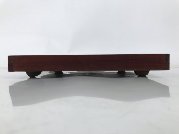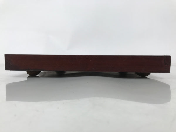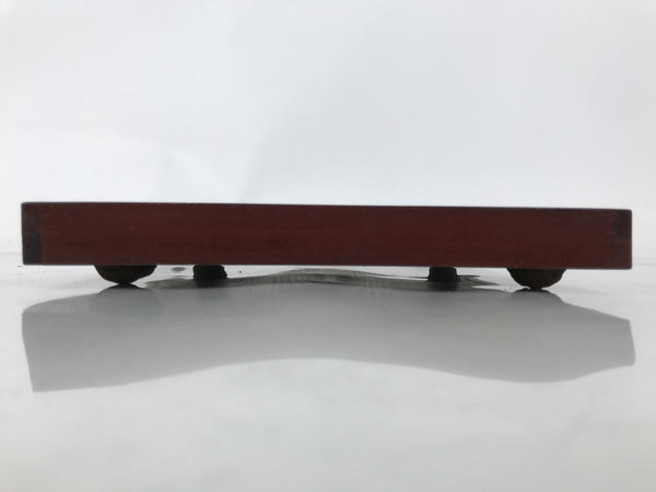 This is an antique Japanese lacquered wooden table or Ozen. This low square table has four walnut legs, which is called Kurumi-zen. This item can be used as a small table or a serving tray. A signature is on the back.