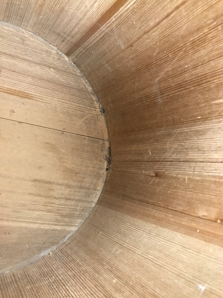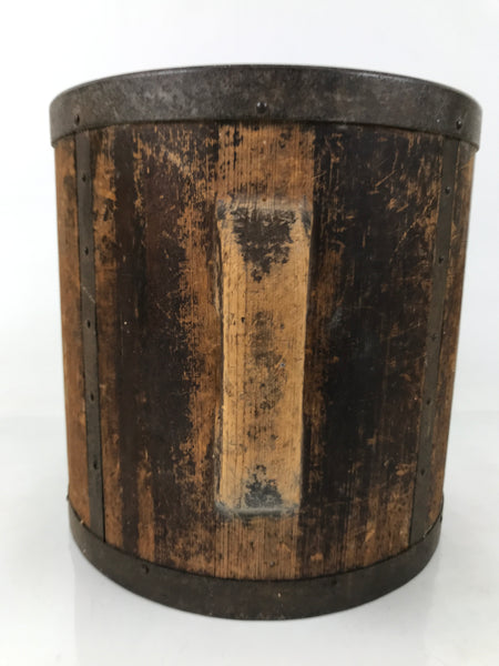 This traditional Japanese rice bucket, Masu or Ittomasu, was once used for measuring and storing units of rice (about 18L). Sturdy hardwood with iron holding it together, this bucket has two handles typically found on most masu. It comes with a heavy solid wood pestle that can be used for pounding cooked rice into mochi.