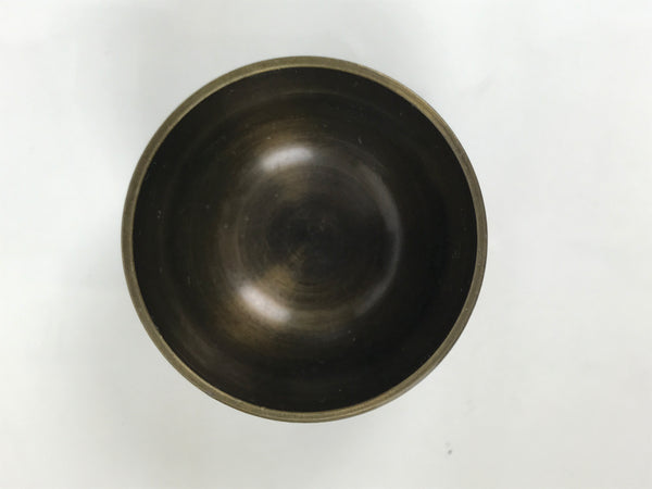 This is a spare part from a vintage Japanese Buddhist brass metal hanging lantern, or rinto, made to be hung in Buddhist altars (butsugu). In particular, this bronze metal part is used as a cup or reservoir in the bottom part of the rinto set. This style typically sits fitted on a small stack of metal plates (secured by the ring at the bottom).