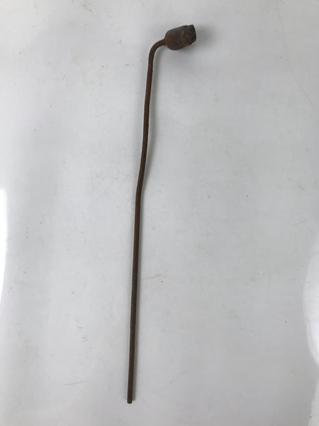 This is a vintage cast iron branding stamp called yaki-in. This piece is meant to be placed over fire or coals and is used to mark wood, leather, fabrics, and most famously traditional Japanese sweets and snacks such as manju, dorayaki, senbei, etc. It is shaped like what appears to be a lotus seed pod.