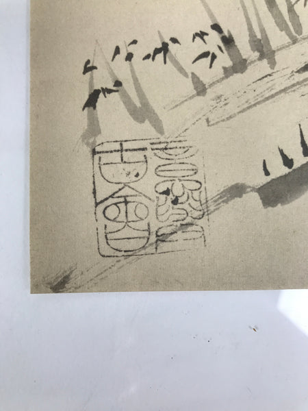 Japanese Art Print Reproduction Rosanji House Full Moon Bamboo Black Paper FL432