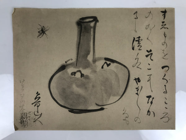Japanese Art Print Reproduction Rosanjin Vase Tsubo Poem Monochrome Paper FL425