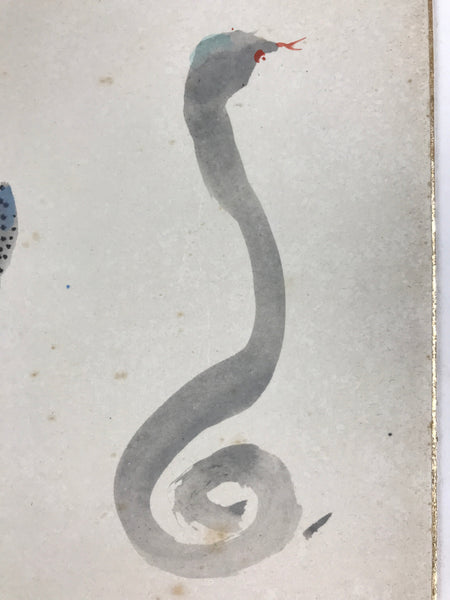 Japanese Shikishi Art Board Horsetail Snake Vtg Painting Nihonga Blue A537