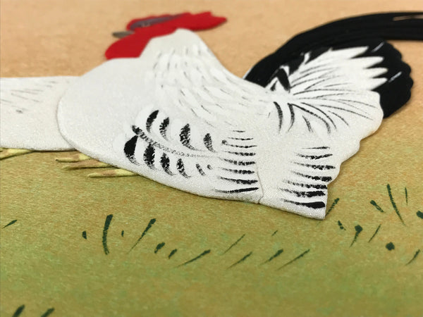 Japanese Zodiac Shikishi Art Board Vtg Oshie Zaiku Fabric Silk Rooster A567
