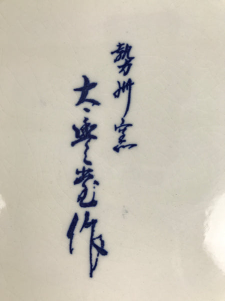 Japanese Porcelain Round Large Plate Vtg Chrysanthemum Carp Koi Fish Blue PX775