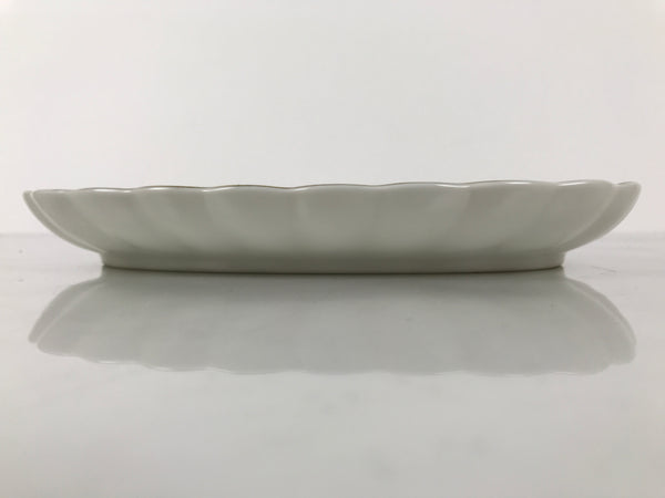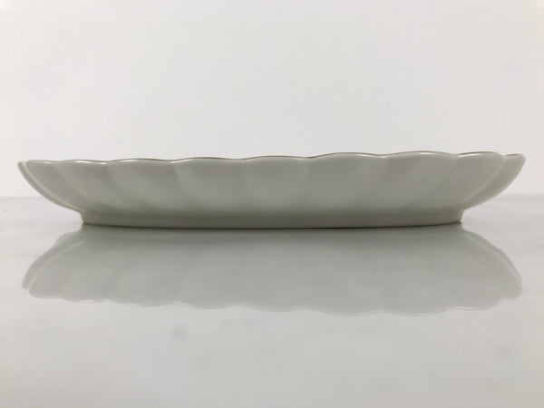 Japanese Porcelain Serving Plate Vtg Oval White Floral Lily Gold Kikuzara Y447