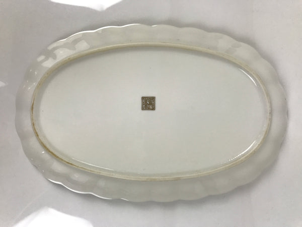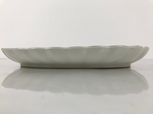Japanese Porcelain Serving Plate Vtg Oval White Floral Lily Gold Kikuzara Y448