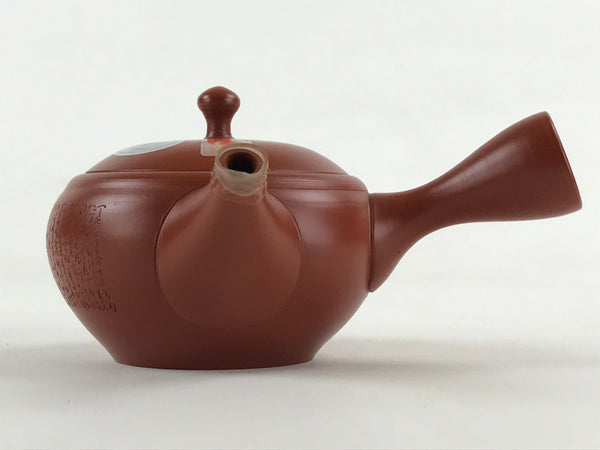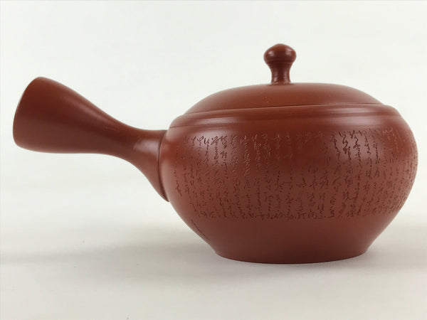 Japanese Ceramic Teapot Kyusu Tokoname Ware Vtg Brown Red Clay Poetry PY450