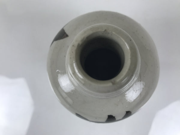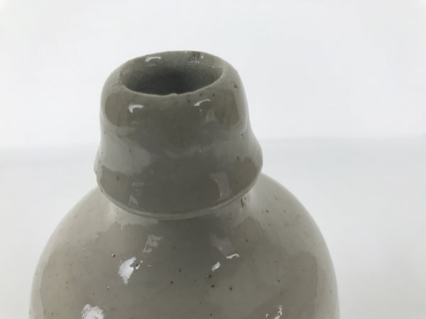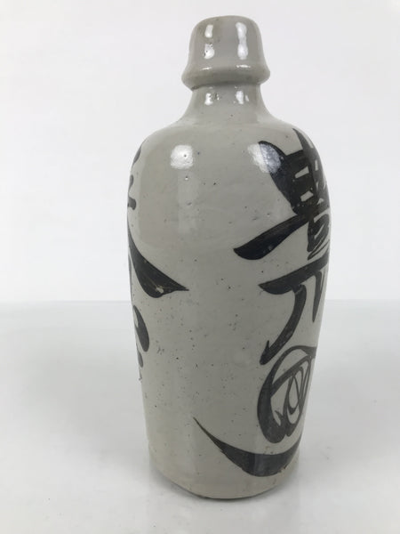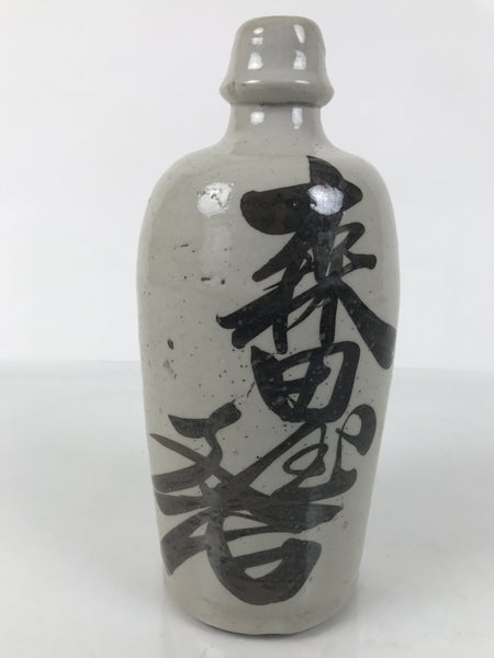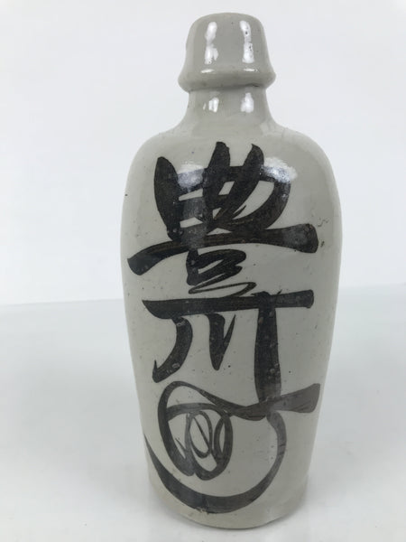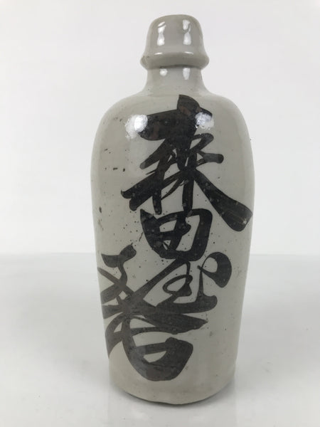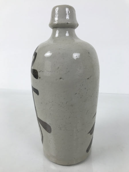 This is a vintage Japanese ceramic sake bottle. It is called a Kayoi-Tokkuri and is used to pour sake. The commuting sake bottle became popular as a rental container for liquor stores in the Edo period when sake began to be consumed daily. This gray bottle has brown lettering.