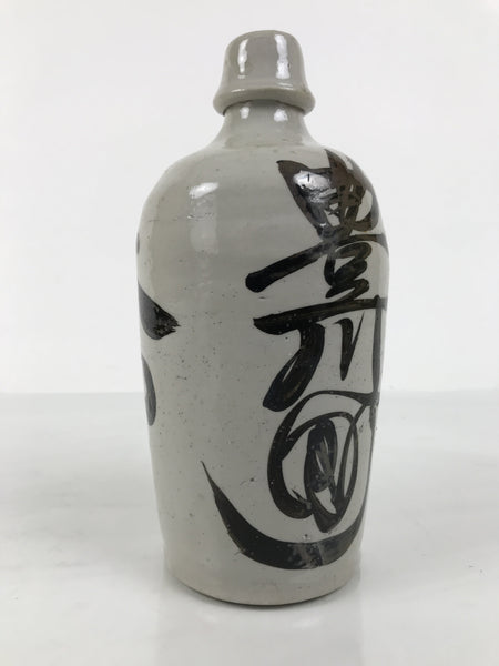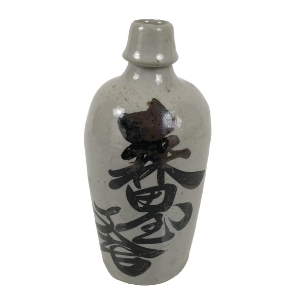 This is a vintage Japanese ceramic sake bottle. It is called a Kayoi-Tokkuri and is used to pour sake. The commuting sake bottle became popular as a rental container for liquor stores in the Edo period when sake began to be consumed daily. This gray bottle has brown lettering.