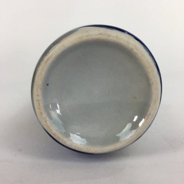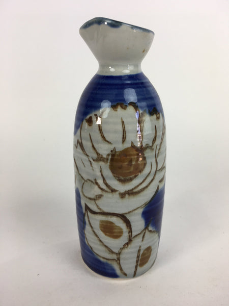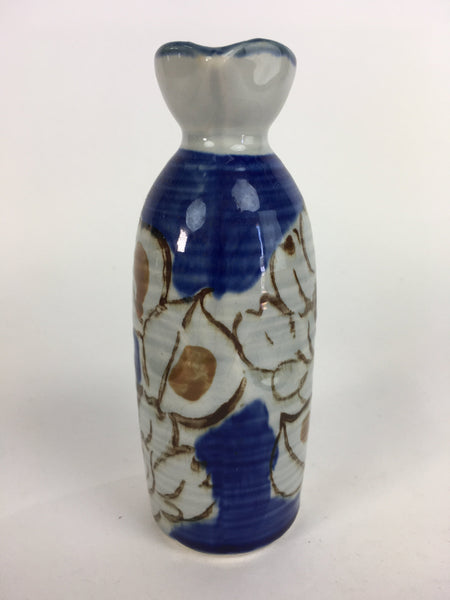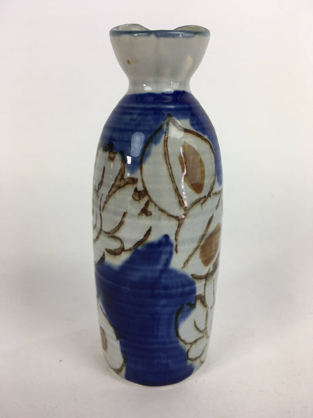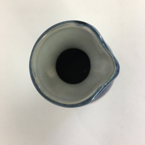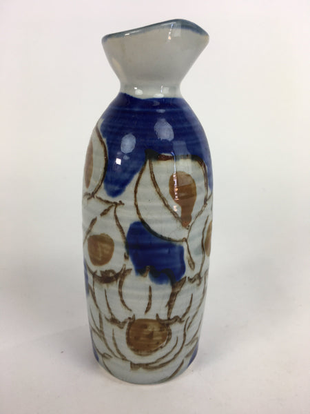 Japanese Ceramic Sake Bottle Tokkuri Vtg Pottery Blue Hand Drawn Picture TS262