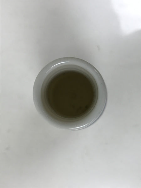 This is a Japanese antique porcelain sake bottle, or Tokkuri. It features a very simple sometsuke design of one blue indigo band. Its compact size makes it easy to use daily for beverages or as a small flower vase.