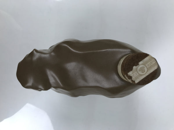 This is a vintage Japanese empty whisky bottle shaped like a monkey. A monkey is one of the Chinese zodiac signs, and zodiac animal statues are a lucky charm displayed at the end of the year and the beginning of the new year. It is matte brown, and has a cork on the top and a sticker around the spout.
