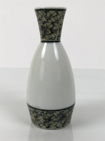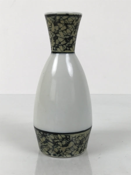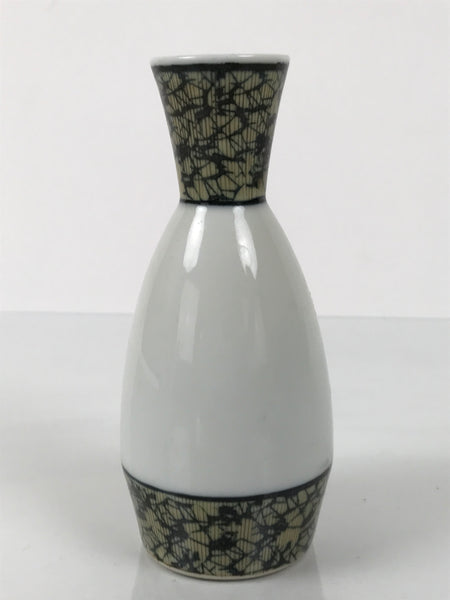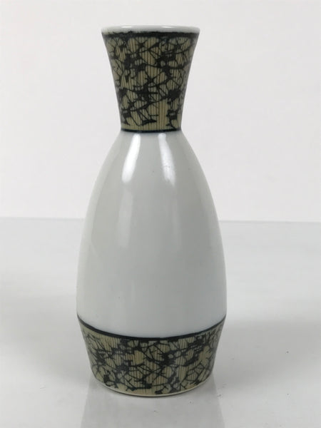 Japanese Porcelain Sake Bottle Tokkuri Vtg White Black Brown Abstract Line TS844