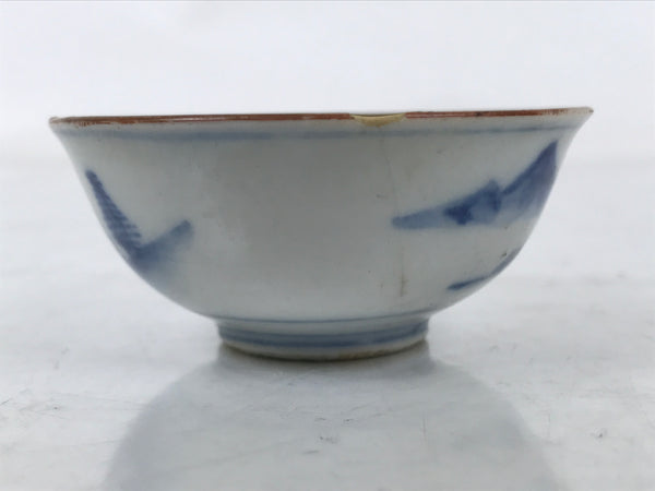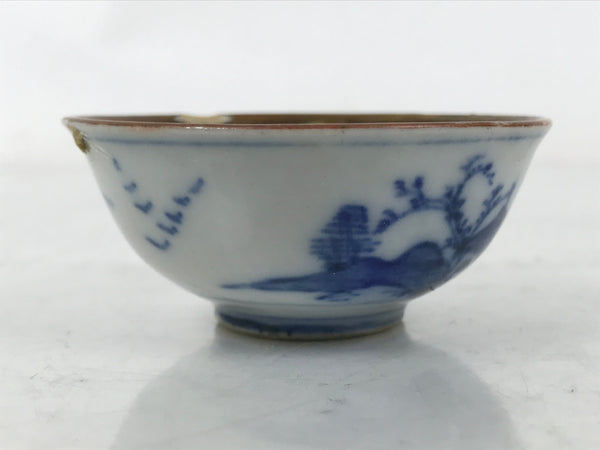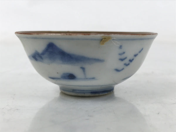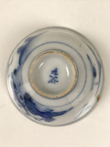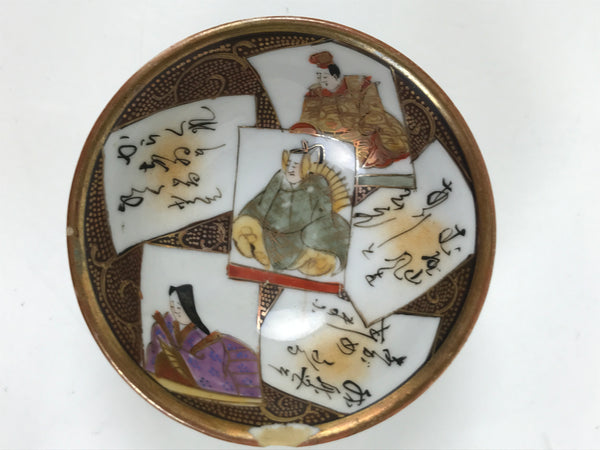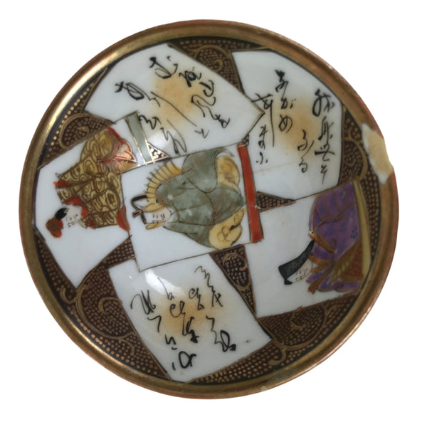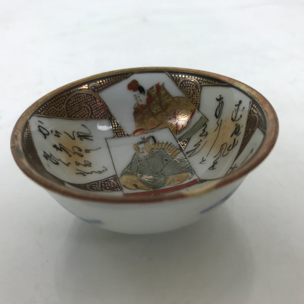 This is a vintage Japanese Kutani ware porcelain sake cup. It looks blue and white outside, but the inside has a beautiful Hyakunin isshu-like design with gold lines. In terms of size, it is called ochoko. Signature of Kutani is on the bottom.