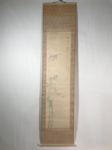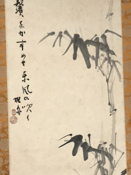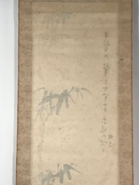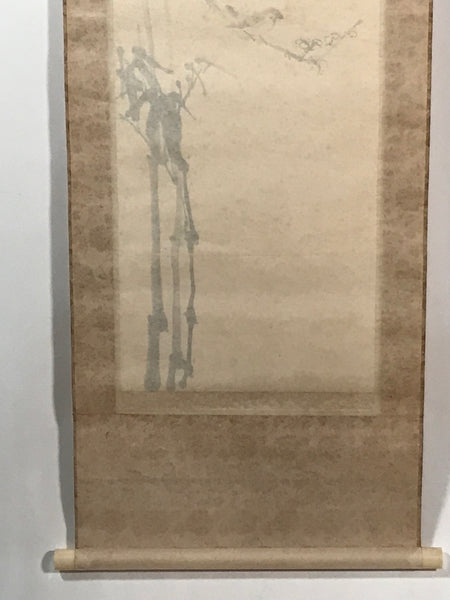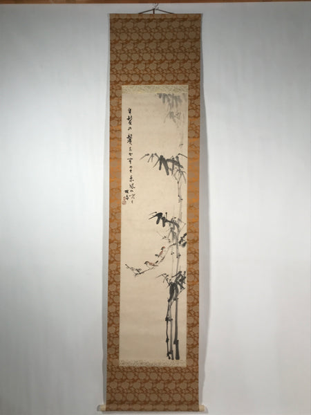 Japanese Hanging Scroll Vtg Kakejiku Bamboo Birds Calligraphy Kanji Color KJ75